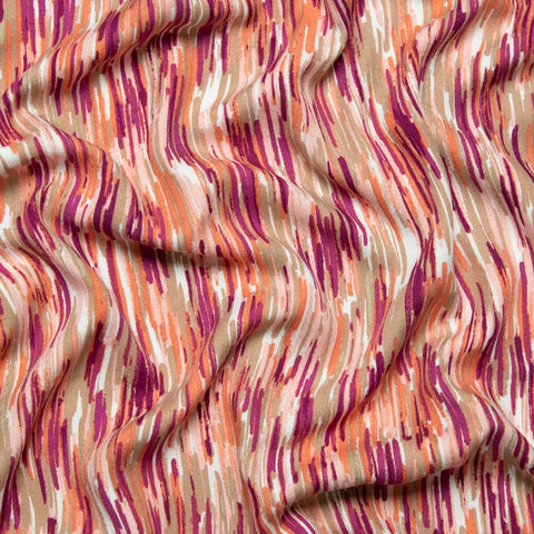 Tkanina wiskozowa z kolorowym nadrukiem. Tkanina idealna na sukienki, bluzki, koszule, lejące spódnice z falbanami i spódnice z koła, chusty i apaszki.
