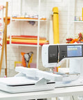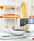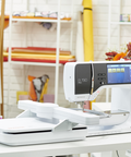 Wskaźnik laserowy wbudowany w maszynę na biężąco pokazuje miejsce wkłucia podczas haftowania, a dodatkowa łączność WiFi zapewnia wrećz nieograniczone możliwości szycia i haftowania.