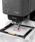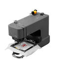 Jednoprzyciskowy nawlekacz igły w hafciarce Skitch wykonuje całą pracę za Ciebie. Nawlecz nić zgodnie z diagramem na maszynie, naciśnij dźwignię, a igła zostanie automatycznie nawleczona za każdym razem.