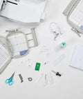 Dodatkowo w hafciarce NV880E jest zamontowany wskaźnik laserowy, który precyzyjnie pokazuje miejsce wkłucia igły. Taki wskaźnik jest niezbędny podczas wykonywania haftów dzielonych oraz podczas łączenia różnych techniki zdobienia odzieży, np. haftu z nadrukiem, przyszywania wyciętej na ploterze (ScanNCut) aplikacji etc.