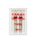 Igły Organ uniwersalne do tkanin, podwójne, półpłaska kolba, 2 szt., grubość 80, rozstaw 3.