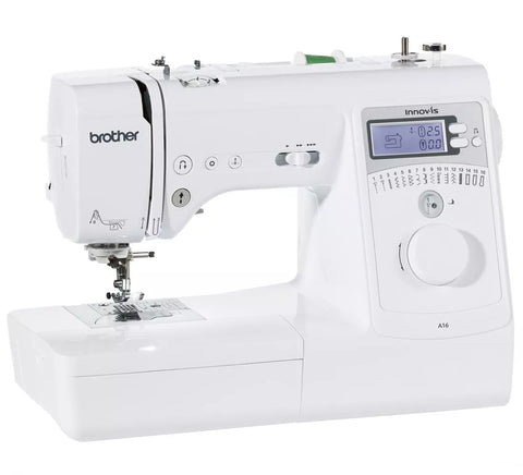 Szybka i prosta w obsłudze elektroniczna maszyna do szycia przeznaczona do użytku domowego. Maszyna do szycia Brother A16 wyposażona została w 16 ściegów, wśród których znajdują się aż 3 rodzaje automatycznego obszywania dziurki. Dzięki rotacyjnemu chwytaczowi maszyna pracuje cicho tworząc bardzo estetyczne ściegi. Za wybór programów ściegowych odpowiada wygodne pokrętło, natomiast na czytelnym wyświetlaczu LCD odczytamy długość i szerokość ściegu. Brother A16 posiada przycisk Start/Stop dzięki czemu możemy szyć bez użycia rozrusznika nożnego. Dodatkowo na obudowie znajdziemy wygodny suwak pozwalający na regulację prędkości szycia (idealna opcja dla dzieci oraz podczas szycia detali). Stopki w tym modelu wymienimy w kilka sekund dzięki zastosowanemu mocowaniu Matic. Bardzo przydatną funkcją będzie też automatyczny nawlekacz, gdzie przy pomocy jednej dźwigni, w szybki sposób, przeciągniemy nitkę przez igłę.