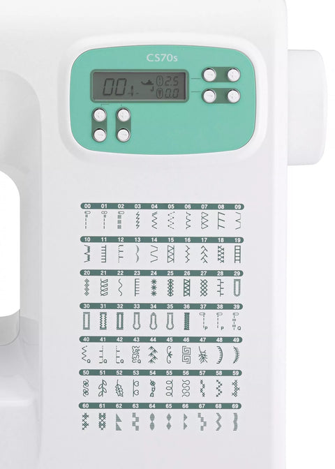 Brother CS70S to sprawdzony model o metalowej konstrukcji wzbogacony o dodatkowe ściegi. Maszyna posiada 70 różnorodnych ściegów w tym ściegi owerlokowe i dekoracyjne. Dodatkowo do dyspozycji użytkownika jest 7 rodzajów automatycznego obszycia dziurek. Ta elektroniczna maszyna skierowana jest zarówno dla osób początkujących jak i zaawansowanych w krawiectwie. Dużym ułatwieniem dla osób początkujących będzie możliwość ograniczenia prędkości szycia i blokada zabezpieczająca możliwość szycia bez opuszczonej stopki. Maszyna posiada również nowe moduły do ustawienia na wyświetlaczu jak szycie podwójną igłą czy automatyczne ryglowanie szwu. Dużą zaletą maszyny jest wbudowany nawlekacz igły. W komplecie z maszyną znajduje się miękki pokrowiec, przewodnik szycia oraz przydatne akcesoria.