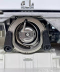 Maszyna została wyposażona w wytrzymały metalowy chwytacz wahadłowy, w którym łatwo wyregulować można naprężenie dolnej nici. Sam proces nawlekania jest zarówno nitki dolnej jak i górnej jest bardzo prosty i oznaczony numerami oraz rysunkami na obudowie maszyny. Dzięki nawlekaczowi, w który została wyposażona maszyna, bez problemu przeciągniemy naszą nitkę nawet przez małe oczko w cienkiej igle, a zamontowany na obudowie nożyk przyspieszy obcinanie nitek.