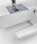 Wszystkie podstawowe akcesoria możemy schować w wygodnych schowku w stoliku maszyny. Po zdjęciu stolika uzyskamy natomiast tak zwane “wolne ramię” dzięki któremu dużo łatwiej podwiniemy spodnie czy rękawy.