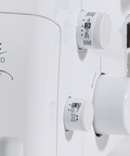 - Regulowany docisk stopki, który gwarantuje, że użytkownik może dobrać odpowiedni nacisk na transport materiału co umożliwia m.in. szycie rozciągliwych materiałów