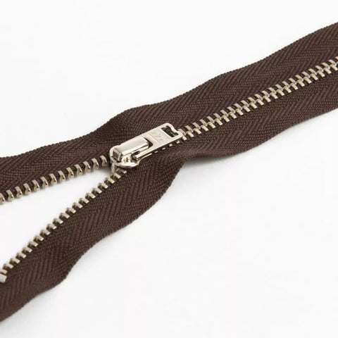 Zamek metalowy anty-niklowy, nierozdzielczy, YKK, długość 18 cm, kolor brązowy.