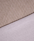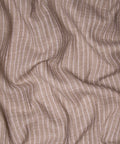Przepiękny, mięsisty muślin bawełniany w jasne paski na beżowym tle. Na lewej stronie tkanina jest w kolorze złamanej bieli.