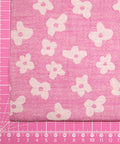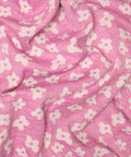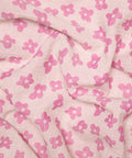 Przepiękny, mięsisty muślin bawełniany żakardowy, dwustronny, z motywem kwiatków w kolorze różu i złamanej bieli.