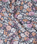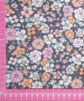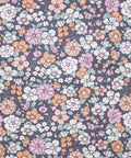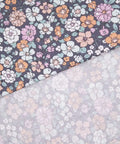 Popelina drobne kwiaty na szaroniebieskim tle GOTS