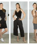 W skład całej kolekcji garderoby wchodzi: wykrój na bluzkę/longsleeve, wykrój na kuloty, wykrój na sukienkę z kieszeniami.