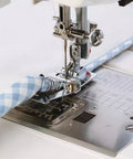 Ułatwia wszycie bardzo popularnego, wykorzystywanego w spódnicach, sukienkach, bluzkach czy poduszkach, zamka krytego. Dzięki dwóm rowkom znajdującym się na spodzie stopki, przesuwającym się po ząbkach jest możliwa idealnie równa odległość od ząbków zamka. Ząbki te są dodatkowo odginane przez stopkę, dzięki czemu igła może wbijać się bardzo blisko zamka, a cały zamek może pozostać niewidoczny na prawej stronie materiału.