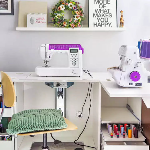 Od teraz możesz mieć wszystko, co potrzebne do szycia pod ręką. Kiedy nie używasz maszyny do szycia, za pomocą kilku ruchów schowasz wszystko i masz uporządkowaną przestrzeń.