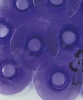 Fioletowe, plastikowe szpulki do maszyn Pfaff.