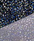 Tkanina wiskozowa elastyczna drobne cętki z niebieskim akcentem na czerni
