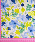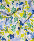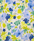 Mięsista i przyjemna w dotyku tkanina wiskozowa o składzie 97% wiskoza 3% elastan z przepięknym kwiecistym printem w odcieniach limonki, błękitu i granatu, na tle w kolorze ecru. Materiał jest bardzo przyjemny w chwycie, lejący. Rozciąga się po szerokości, jest gładki. Idealny materiał na kimono, sukienkę czy spódnicę, a także letnie spodnie czy bluzki i koszule. Przewiewna tkanina o naturalnych właściwościach. Nie prześwituje, nie wymaga podszewki, lekko się gniecie. Dzięki dodatkowi elastanu nadaje się na projekty dedykowane dla dzianiny.