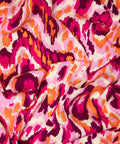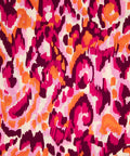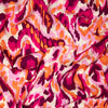 Mięsista i przyjemna w dotyku tkanina wiskozowa o składzie 97% wiskoza 3% elastan z przepięknym ornamentowym printem w odcieniach fuksji, pomarańczowego, różu na tle w kolorze ecru. Materiał jest bardzo przyjemny w chwycie, lejący. Rozciąga się po szerokości, jest gładki. Idealny materiał na kimono, sukienkę czy spódnicę, a także letnie spodnie czy bluzki i koszule. Przewiewna tkanina o naturalnych właściwościach. Nie prześwituje, nie wymaga podszewki, lekko się gniecie. Dzięki dodatkowi elastanu nadaje się na projekty dedykowane dla dzianiny.