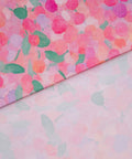 Wiskoza satynowa owoce z listkami w odcieniach różu