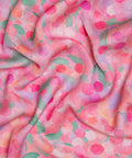 Tkanina wiskozowa o składzie 100% wiskoza satynowa z wzorem owoców i listków w odcieniach różu. Idealna na sukienkę, bluzkę, tunikę, kombinezon, spódnicę z falbanami, spódnicę z koła, chusty i apaszki. Przewiewna tkanina o naturalnych właściwościach, idealna na wiosnę, lato, jesień. Przyjemna w chwycie, miękka, lejąca się.