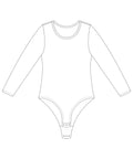 Body ma klasyczny, bardzo podstawowy i ponadczasowy krój - kszałt linii na pupie przypomina brazyliany, góra body została z kolei zaprojektowana w taki sposób by nie odsłaniać nadmiernie dekoltu, wycięcie na plecach jest płytkie, jak w klasycznym t-shircie lub longsleeve, zasłania zapięcie biustonosza i zakrywa całe plecy. Wykrój zawiera długi rękaw.