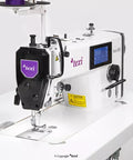 Maszyna została wyposażona w wygodny ekran dotykowy, na którym ustawiamy wszystkie parametry szycia takie jak automatyczne ryglowanie na początku i końcu ściegu (z dokładną ilością wkłuć i powtórzeń), automatyczne obcinanie nici, automatyczne podnoszenie stopki czy pozycja igły podczas kończenia szycia. W panelu ustawisz też prędkość szycia odpowiednią dla swoich potrzeb dzięki czemu jest to model idealny również dla osób siadających pierwszy raz przy maszynie przemysłowej.