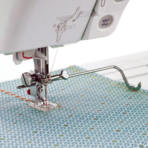 Prowadnik ułatwia prowadzenie równej linii szycia w zakresie 1-11 cm. W zestawie znajdują się dwa długie prowadniki (lewy oraz prawy). Zestaw taki będzie niezastąpiony przy równoległym pikowaniu.