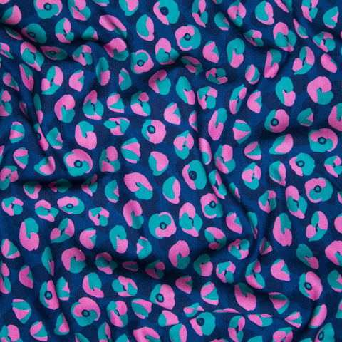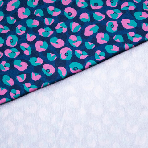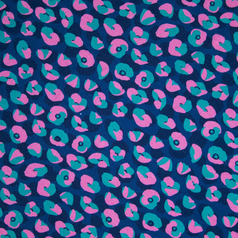 Dresówka pętelka kwiaty fuksja zieleń na granatowym tle