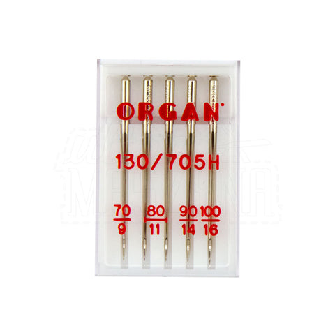 Igły Organ uniwersalne do tkanin, półpłaska kolba , 5 szt., grubości 70, 80, 90, 100.