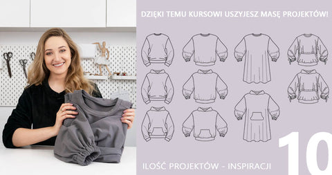 ✅ uszyjesz różne warianty bluz: z kapturem, stójką, dekoltem w serek, kieszeniami lub bez,