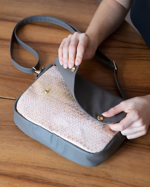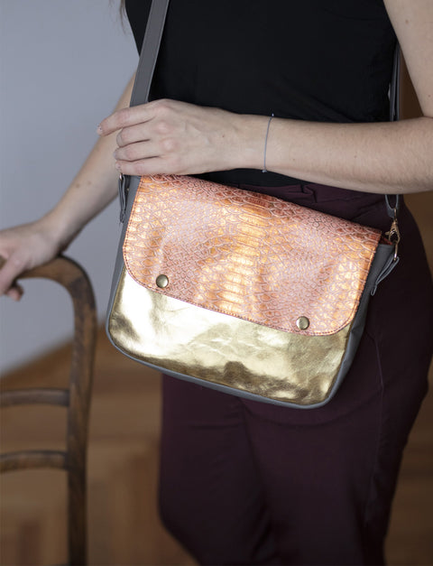 ✅ uszyjesz od podstaw torebkę listonoszkę z klapką i regulowanym paskiem,