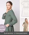 Ten kurs jest dla Ciebie, jeśli chcesz uszyć prostą, codzienną sukienkę, która nie tylko dobrze wygląda, ale też jest wygodna i praktyczna – dzięki bocznym kieszeniom. To idealny projekt dla osób, które opanowały podstawy szycia i chcą nauczyć się szyć ubrania z wykroju krok po kroku, bez stresu i z pełnym wsparciem.
