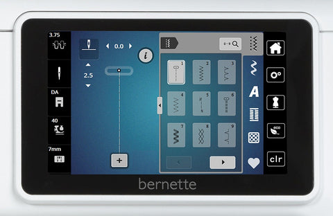W Bernette B77 większość ustawień stosujemy do naszych potrzeb przy pomocy czytelnego 5-calowego, dotykowego ekranu oraz wygodnych przycisków i pokręteł. Sam układ sterowania zaczerpnięty został z profesjonalnych urządzeń marki Bernina cieszących się dużym uznaniem na rynku.