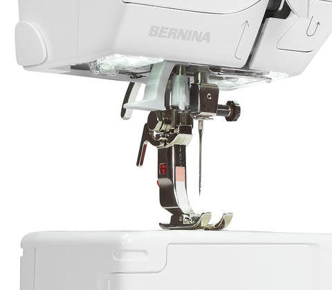 Powiększone pole pracy (dodatkowy stolik w zestawie) oraz mechanizm wyłączania transportu pozwalają na wykorzystanie Berniny B325 również jako maszyny do pikowania i patchworku.