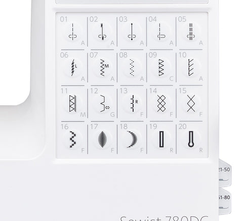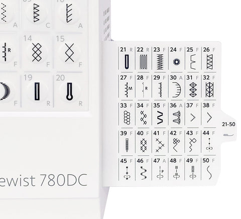 Janome 780DC została wyposażona w 80 programów ściegowych. Wśród których znajdziesz ściegi użytkowe (ścieg prosty, zygzak, elastyczny (do szycia dzianin), kryty, ścieg owerlokowy), ściegi do naszywania aplikacji, piękne ściegi dekoracyjne (z funkcją wydłużania ściegów satynowych bez utraty ich gęstości, w ten sposób zyskujesz nową formę dekoracji), a także 3 rodzaje automatycznego obszywania dziurek na wymiar guzika.