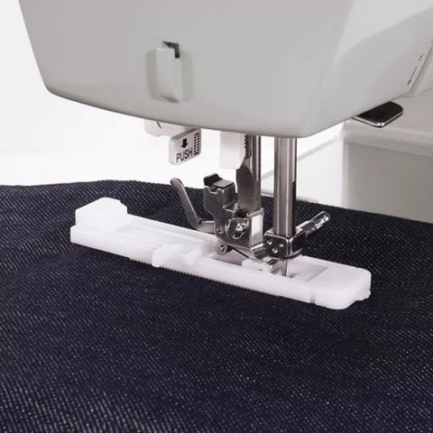 - 7-stopniowy mechanizm transportu (dzięki niemu zawsze możesz rozpocząć szycie od samego brzegu materiału, zachowując absolutną precyzję)