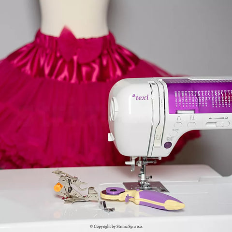 TEXI BALLERINA to wieloczynnościowa maszyna do szycia sterowana komputerowo. Wyposażona w 200 programów szycia, przyciski funkcyjne ułatwiające pracę oraz w zestaw stopek i stolik powiększający pole pracy. Wytrzymała i praktyczna - spełni oczekiwania najbardziej wymagających użytkowników.