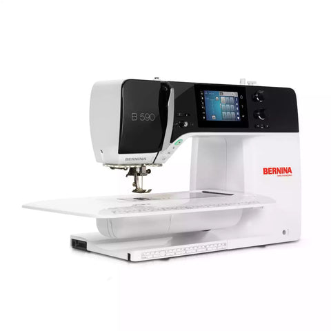 Ten nowoczesny model maszyny komputerowej połączony został z wygodnym modułem haftującym dzięki czemu nie tylko uszyjemy oryginalne ubrania ale również osdobimy je kreatywnymi haftami. Maszyna Bernina B590 wyposażona jest w 1774 programy ściegowe (licząc z literami). W zestawie znajduje się 500 ściegów dekoracyjnych, 59 ściegów do pikowania oraz 40 pięknych ściegów krzyżykowych. Wybór konkretnego ściegu odbywa się za pomocą dotyku ekranu lub wyboru joystickiem.