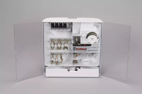Dodatkowo maszyna do szycia i hafciarka Bernina B590 posiada czujnik zerwania nitki górnej oraz braku na szpulce nitki dolnej.