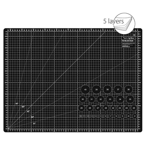 5-warstwowa mata podkładowa z podziałką centymetry / cale, zaznaczonymi kątami i liniami równoległymi.