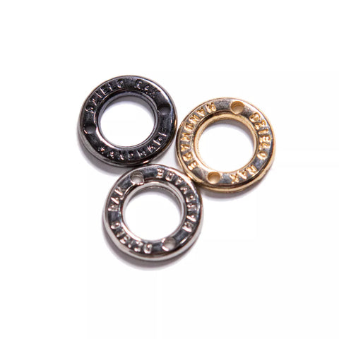 Okrągła metalowa metka z napisem dzieło rąk, handmade
