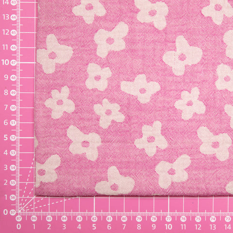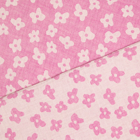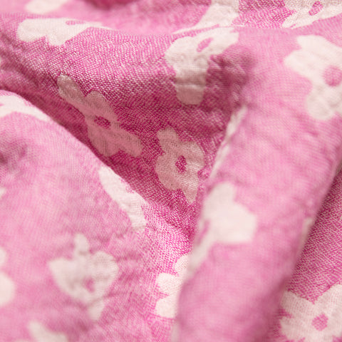 Przepiękny, mięsisty muślin bawełniany żakardowy, dwustronny, z motywem kwiatków w kolorze różu i złamanej bieli.