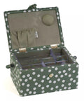 Materiałowe i wzorzyste wykończenie sprawia, że przybornik będzie świetnie wyglądał oraz pozwoli zachować porządek, zarówno w krawieckim atelier jak i w domowej pracowni.