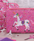 Kuferek posiada plastikową półeczkę z przegródkami, dużą kieszonkę na szerokość całej klapki, poduszkę na szpilki oraz magnetyczne zapięcie.