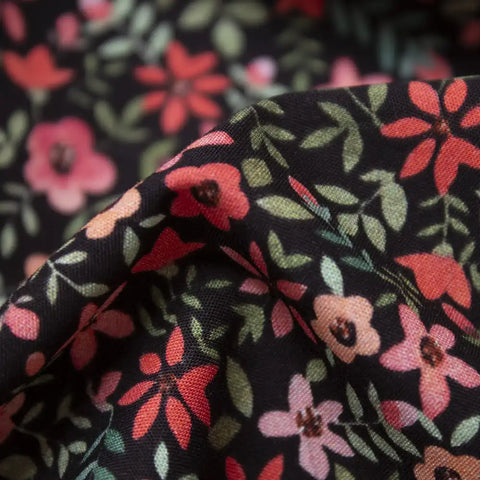 Popelina czerwone kwiaty na czerni