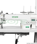 ZOJE ZJ0303L-3-BD SET to stebnówka tapicerska i kaletnicza do grubych materiałów i skór z wbudowanym silnikiem AC Servo, podwójnym transportem - dolnym ząbkowym oraz górnym stopkowym i szpulką o dużej pojemności nici.