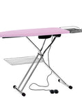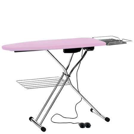 Składana deska / stół prasowalniczy, o wymiarach 120x45 cm z odsysaniem i nadmuchem 40W, podgrzewaną powierzchnią 400W, regulacją wysokości oraz z półką do odstawiania żelazka lub małej wytwornicy.