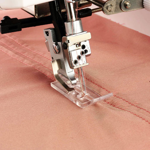 Stopka firmy Janome idealna do wszywania wypustek, sznurków. Dzięki stopce i prowadnikowi uda się Tobie stworzyć ozdoby zwane szczypankami, wypustkami. Będą one tworzone równo dzięki prowadnikowi oraz rowkowi w stopce.