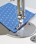 Stopka skonstruowana do wykonywania perfekcyjnych stebnowań. Posiada specjalną, wąską budowę (zajmuje tylko 2 mm z każdej strony od pozycji igły) dzięki czemu z łatwością można szyć tuż przy krawędzi na np. kołnierzykach, kieszeniach, mankietach. Dzięki zastosowaniu bardzo małego otworu na igłę, materiał podczas szycia jest lepiej przytrzymywany niż przy użyciu stopki uniwersalnej. Dzięki temu, powstający ścieg jest idealnie prosty. Dodatkowo eliminujemy możliwość wystąpienia przepuszczania ściegu oraz wciągania materiału w płytkę ściegową.