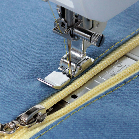 Specjalistyczna stopka, której zadaniem jest ułatwienie precyzyjnego wszycia zamka błyskawicznego. Dzięki specjalnej konstrukcji umożliwia szycie po obu stronach zamka, pozwalając igle pracować bardzo blisko jego ząbków. Dzięki temu końcowy efekt jest bardzo dokładny i estetyczny. To niezastąpiona stopka podczas szycia odzieży, czy toreb. Przy odrobinie wprawy może również posłużyć do wszywania wypustek. To niezbędna stopka w zestawie akcesoriów dla osób szyjących odzież i domowe dekoracje.