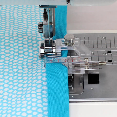 Stopka umożliwiająca wszycie zaprasowanej lamówki z dużą łatwością i precyzją. Dużym atutem jej jest możliwość wszywania lamówek o różnej szerokości (w zakresie od 5 mm do aż 2 cm po wszyciu). Przy pomocy tej stopki można wszyć lamówkę ściegiem prostym, ale również ściegami ozdobnymi (do szerokości 7 mm). Dzięki możliwości regulacji pozycji elementu prowadzącego lamówkę, ściegi mogą być tworzone całkowicie lub tylko częściowo na lamówce. Stopka idealnie sprawdzi się przy wykańczaniu firanek, zasłon, obrusów, narzut, odzieży, a także szwów w torebkach, kosmetyczkach, płaszczach itp. Przyda się ona zarówno osobom początkującym, stawiającym swoje pierwsze kroki w poznawaniu technik szycia jak i zaawansowanym.